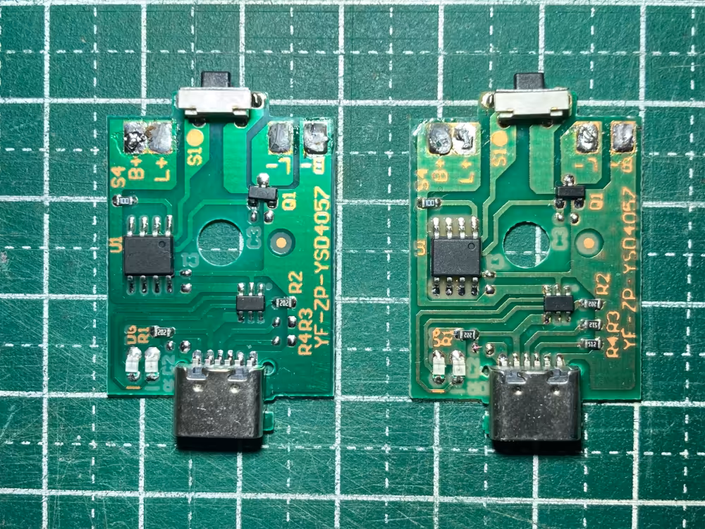 充電はIC制御されているので過充電になることはないと思いますが、過放電には制御がされていません。これでは過放電でバッテリーが劣化しそうですが、意外に問題ないようです。