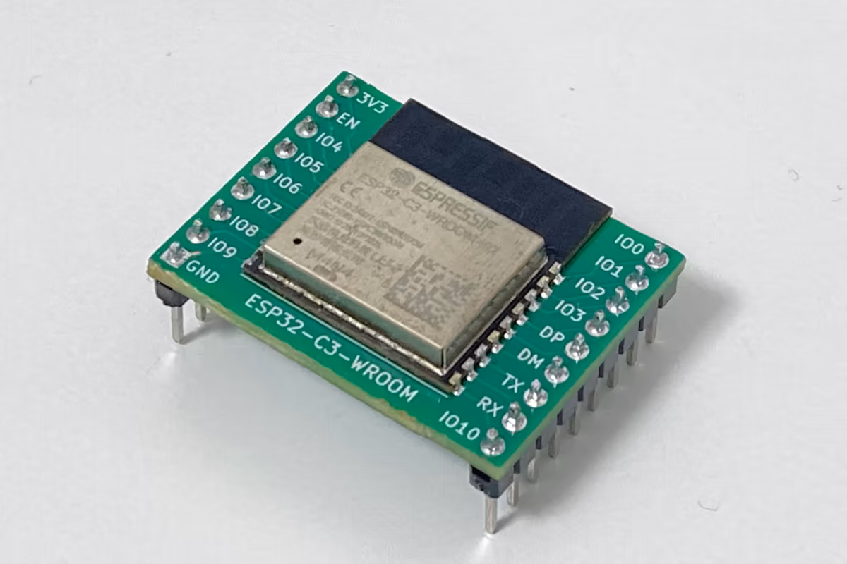 ESP32-C3はESP32シリーズの廉価モデルで、アンテナ内蔵のモジュールを300円程度で購入することができます。普通のESP32と比べ機能やIOピンは少ないですが、WiFi, Bluetoothはもちろん、ESP32にはないUSBもあるので個人的に重宝しています。